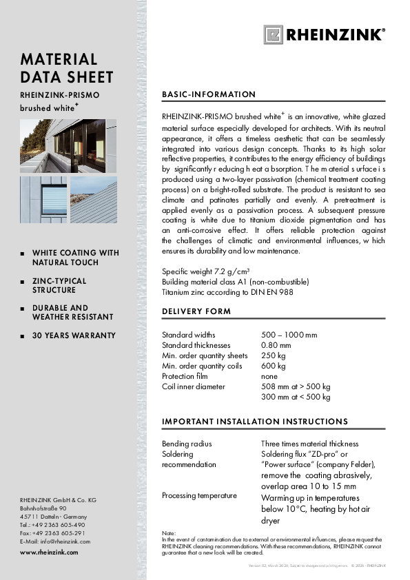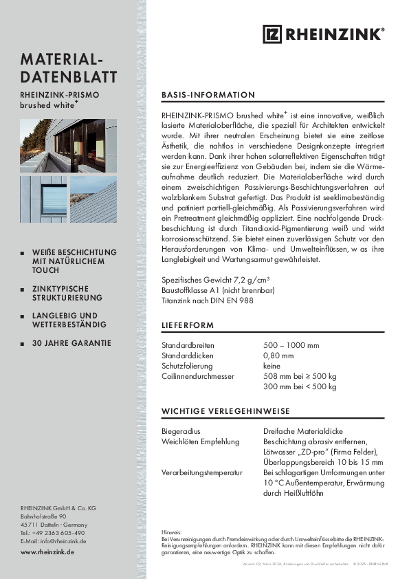 Resultaattype Algemeen (4) Referenties (3) Downloads (17) zoeken Vorige123Volgende RHEINZINK-PRISMO brushed white+ Material data sheet pdf 279 KB Band- en Bladmateriaal …Volledig ondersteunde dakbedekking in RHEINZINK PRISMO PDF 34 KB RHEINZINK-PRISMO brushed white+ Materialdatenblatt pdf 277 KB Halbzeug_Band_Tafel_Beschichtet_PRISMO_plus_nach_EN_14783_LE_001_NL_nl.PDF … Diktes 0,65|0,7|0,8|1,0(mm) ± 0,03mm RHEINZINK-PRISMO brushed NPD BROOF (t1) (2000/553/EC) Opmerking:… PDF 56 KB Prestatieverklaring_EN_14783_RHEINZINK_PRISMO_brushed_blad_en_bandzink.PDF … Diktes 0,65|0,7|0,8|1,0(mm) ± 0,03mm RHEINZINK-PRISMO brushed NPD BROOF (t1) (2000/553/EC) Opmerking:… PDF 56 KB Halbzeug_Band_Tafel_Beschichtet_nach_EN_14783_LE_002_NL_nl.pdf … ± 0,03mm + 35µm organische coating RHEINZINK-PRISMO De materialen in het product geen gevaarlijke… pdf 56 KB SCIP product list REACH … BLUEGR HOPPER HEAD, PP GRAPHITEGR HOPPER HEAD, PRISMO GOLD HOPPER HEAD, PRISMO RED HOPPER HEAD, CL… pdf 57 KB SCIP-Produktliste REACH … BLAUGR WASSERKASTEN, PP SCHIEFERGR WASSERKASTEN, PRISMO GOLD WASSERKASTEN, PRISMO ROT WASSERKASTEN, CL… pdf 59 KB Felsdak … kleurtinten in een subtiele afwerking PRISMO PRISMO De elegante patinalook van zink, direct… RHEINZINK dak- en gevelsystemen technische handleiding RHEINZINK fels, roeven en losanges voor daken en gevels pdf 4 MB Vorige123Volgende
