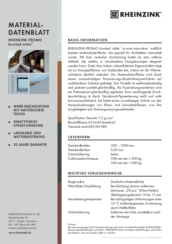 …Factsheet RHEINZINK-PRISMO brushed white+
